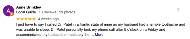 Dr. Patel five to seven years ahead of his peers. In his first month of working with his father, he learned how to perform full-mouth rehabilitations, something newly trained dentists are usually not too keen on. His extensive knowledge in the field does not end there.